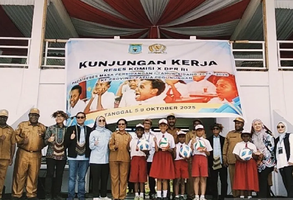 Rombongan Komisi X DPR RI memberikan bantuan alat olahraga ke beberapa sekolah, termasuk SD YPPGI Napua dan SD Inpres Kulitarek, yang dipusatkan di Stadion Pendidikan Wamena, Kabupaten Jayawijaya, Papua Pegunungan.