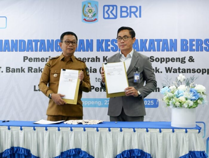 SOPPENG, Mediain.id — Bank Rakyat Indonesia (BRI) Kantor Cabang Watansoppeng menggandeng Pemerintah Kabupaten Soppeng dalam rangka mempercepat digitalisasi sistem pembayaran guna mendukung peningkatan Pendapatan Asli Daerah (PAD). Kegiatan tersebut berlangsung di Aula Kantor Cabang BRI Watansoppeng, Senin (22/12/2025).