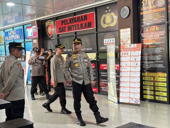 Usai apel, rombongan melakukan peninjauan ke Gedung Pelayanan Publik Polresta Gowa guna memastikan sarana dan prasarana berjalan optimal.